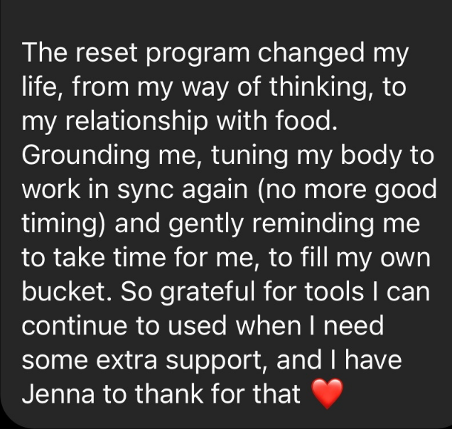I created The Reset to end the burnout and confusion. This is your way out of diet mode and into a way of eating that energizes your body and supports your emotions—without restrictions, guesswork, or shame.